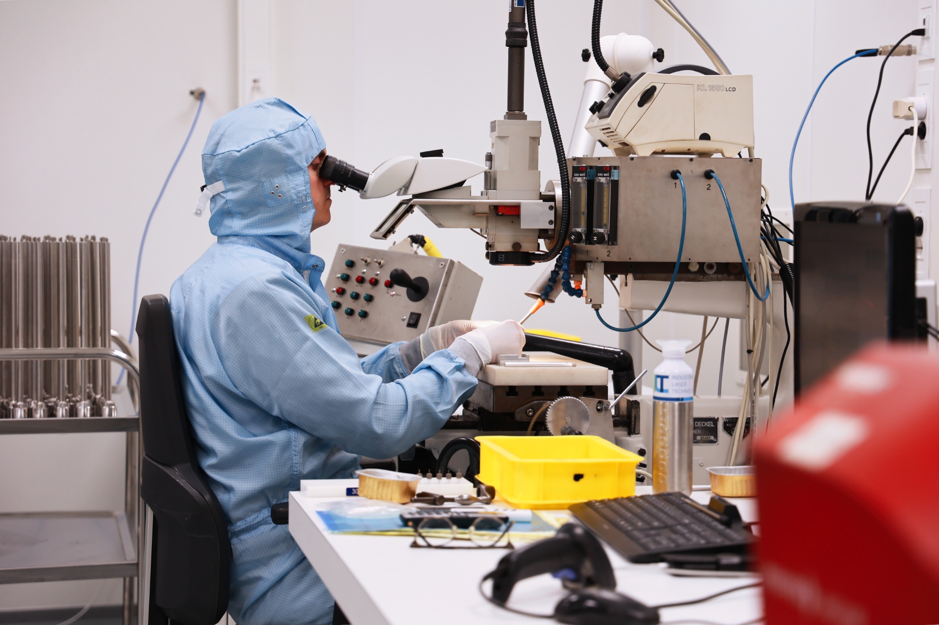 Das Arbeiten in einem Reinraum mit den dazugehörigen Verfahren reduziert die potentielle Kontamination von Produkten. Vor allem für zusammengesetzte Produkte für die Halbleiterindustrie kann dies eine Vorschrift sein, so dass das Laserschweißen solcher Produkte im Reinraum stattfindet.