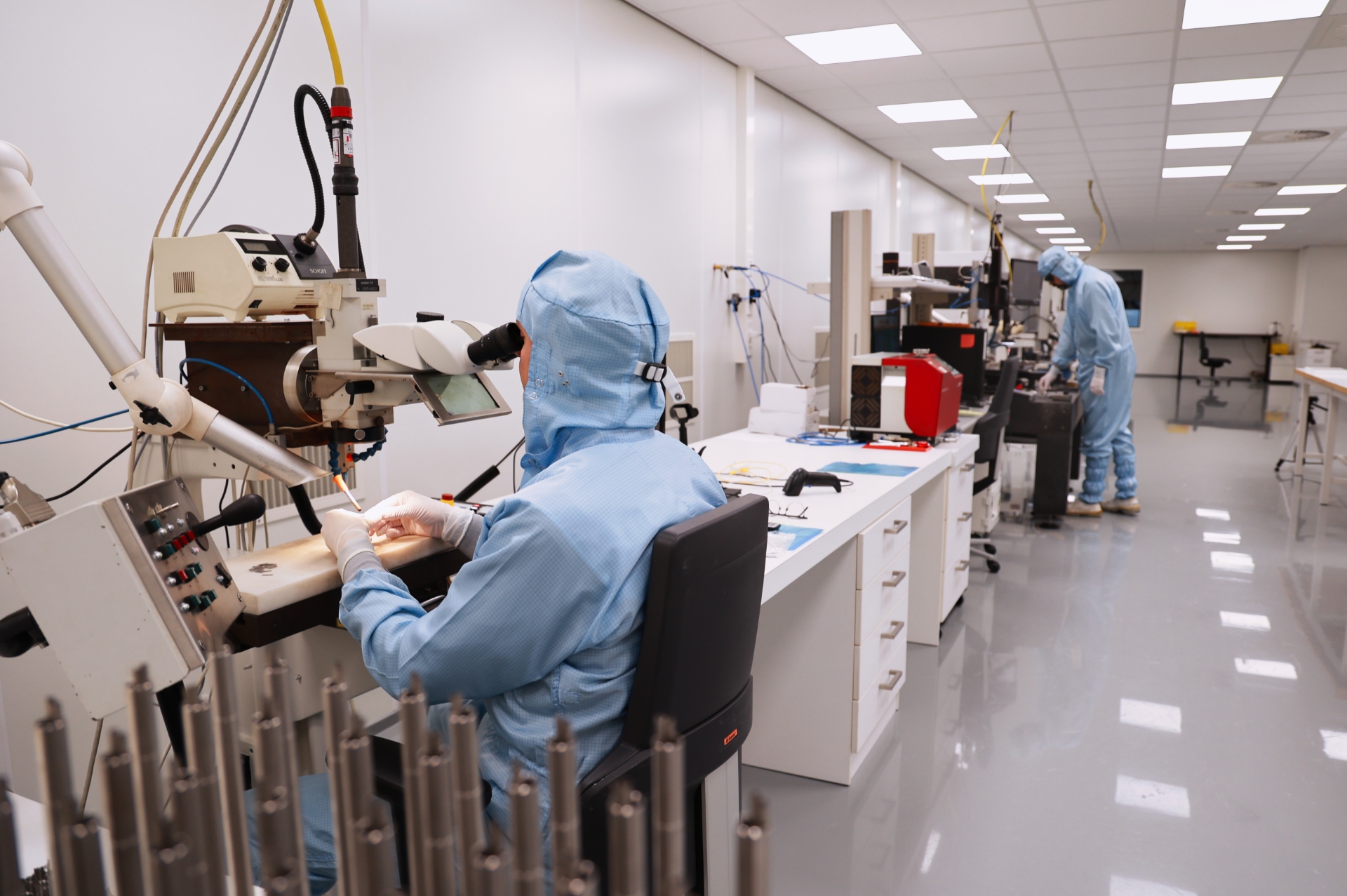 Innerhalb das Reinraum verfügen wir über verschiedene Hand- und CNC-Schweißanlagen. Darüber hinaus haben wir im Reinraum die Möglichkeit, bei geschweißten Produkten eine Vakuum-Helium-Dichtigkeitsprüfung durchzuführen und sie dann zu verpacken, sodass die Produkte den Reinraum getestet und verpackt verlassen.